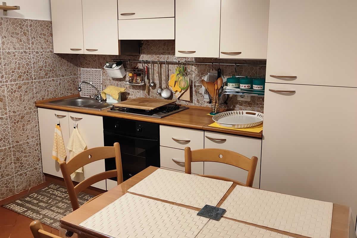 E’ un trilocale composto da salottino, cucina, camera matrimoniale e bagno. Nel salottino c’è un divanetto e si può aggiungere ancora un letto. Balcone riservato.